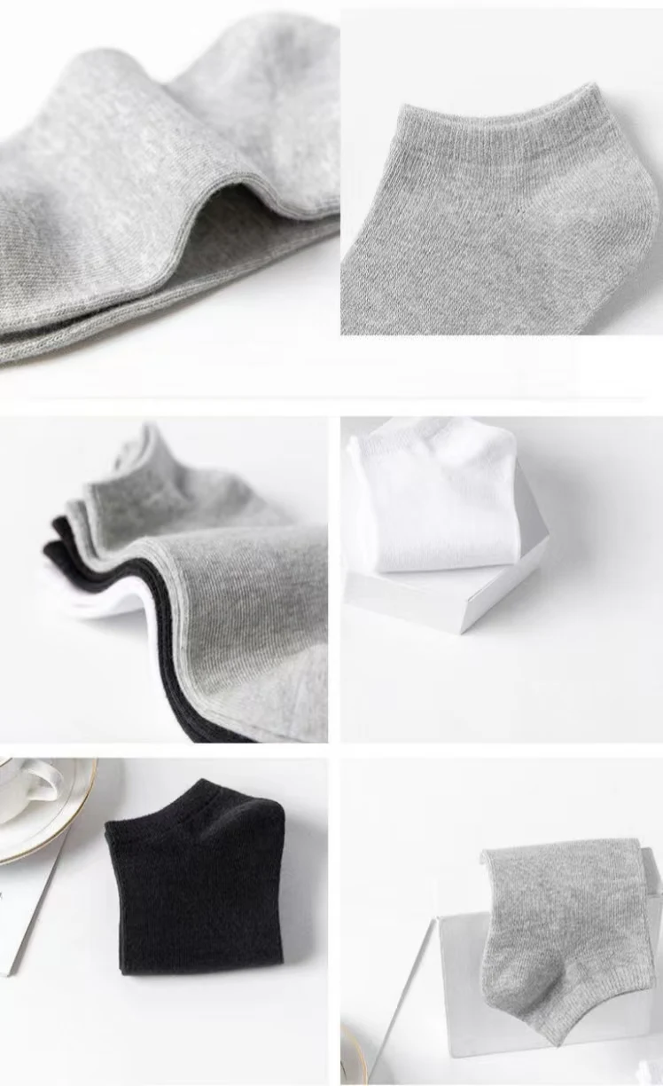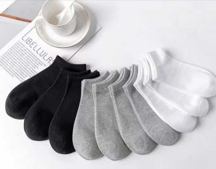 5/10/20 pairs of men's summer and autumn simple black and white solid color boat socks invisible socks men's ankle socks